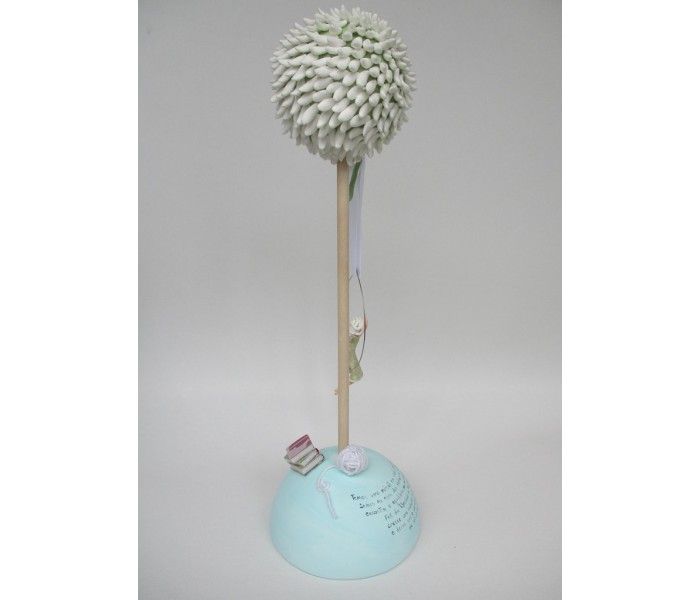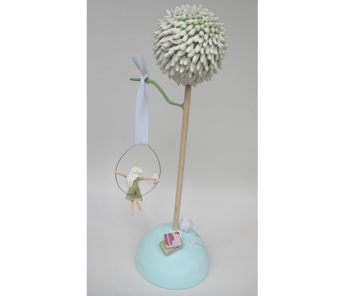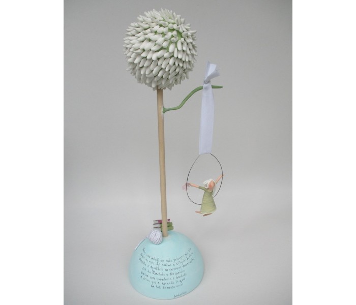 Escultura feita em massa ultra leve, composta por meio mundo de 12cm de diametro, arvore de 30cm e figura