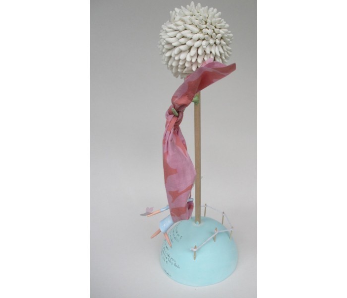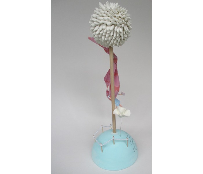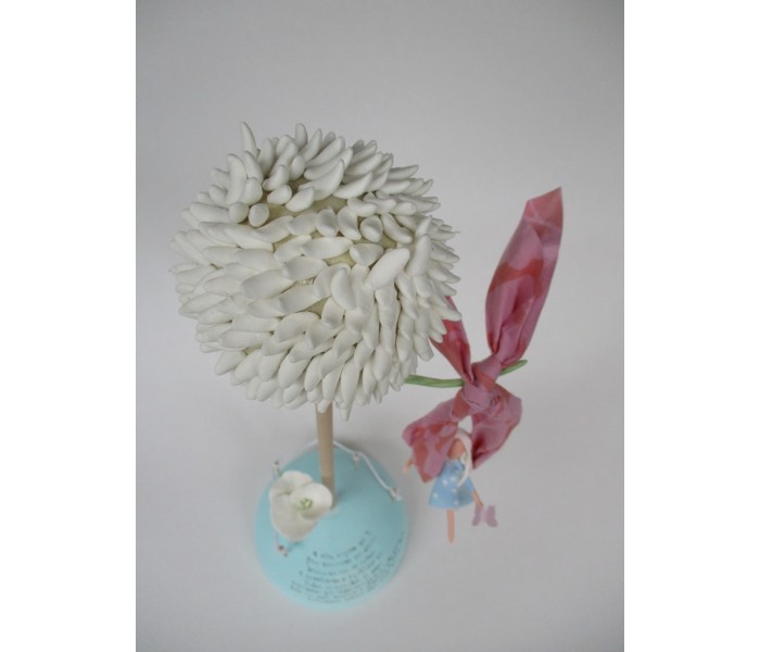 Escultura feita em massa ultra leve, composta por meio mundo de 12cm de diametro, arvore de 30cm e figura