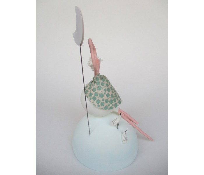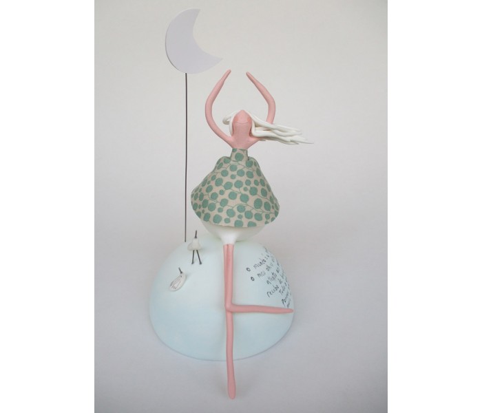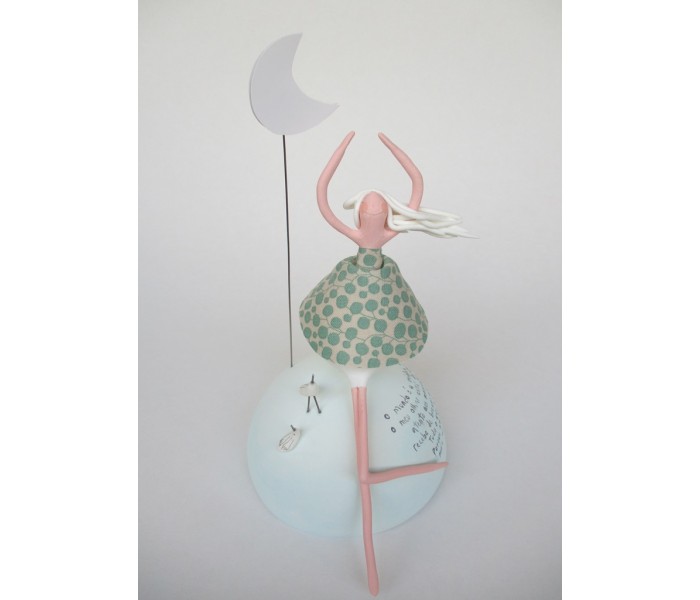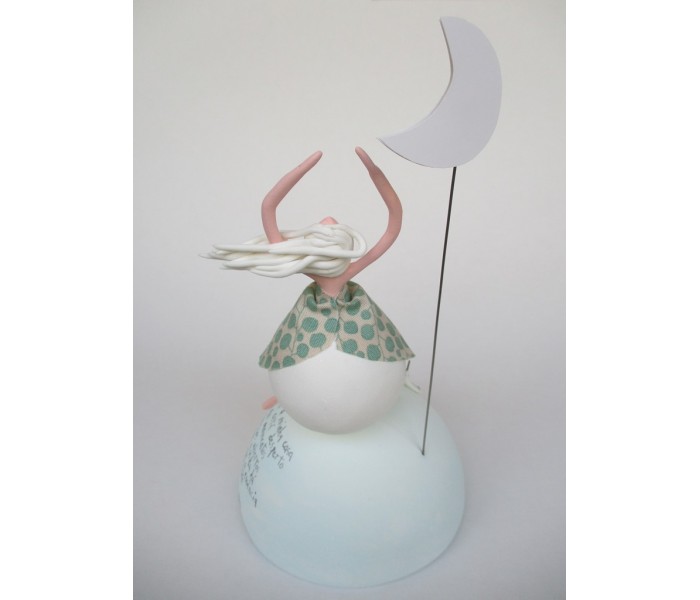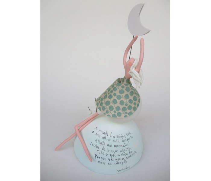 Escultura feita em massa ultra leve composta por meio mundo de 10cm de diametro, figura com 15cm e texto
