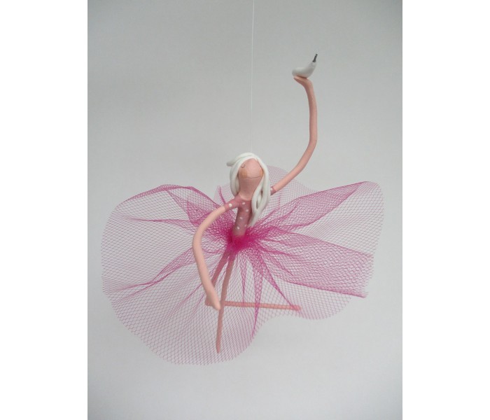 Escultura feita de massa ultra leve para suspender, com 18cm de altura e texto