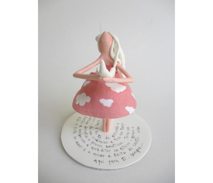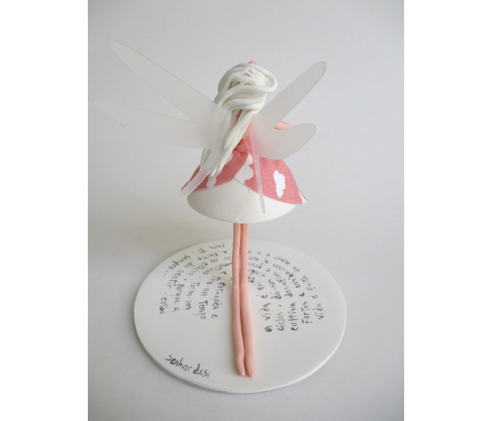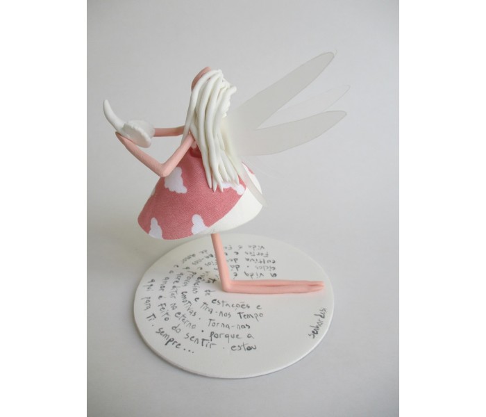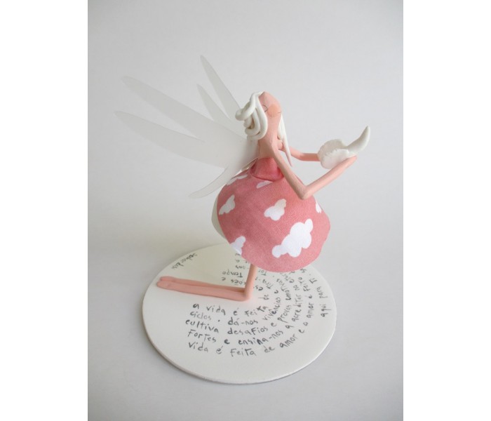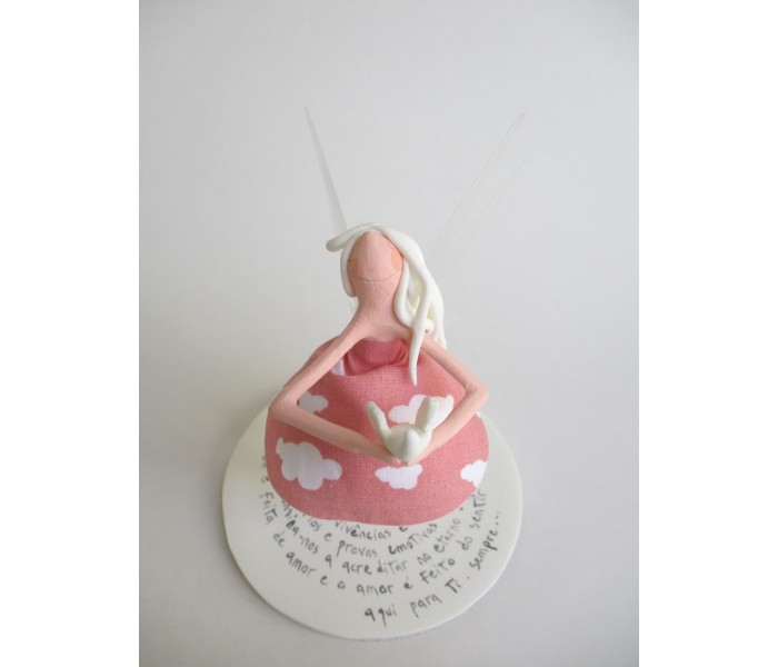 Escultura feita em massa ultra leve com base de massa com 9cm de diametro, figura de 14cm e texto