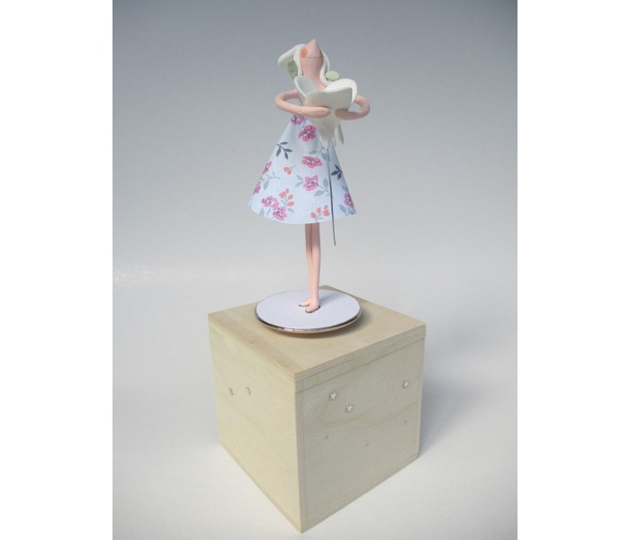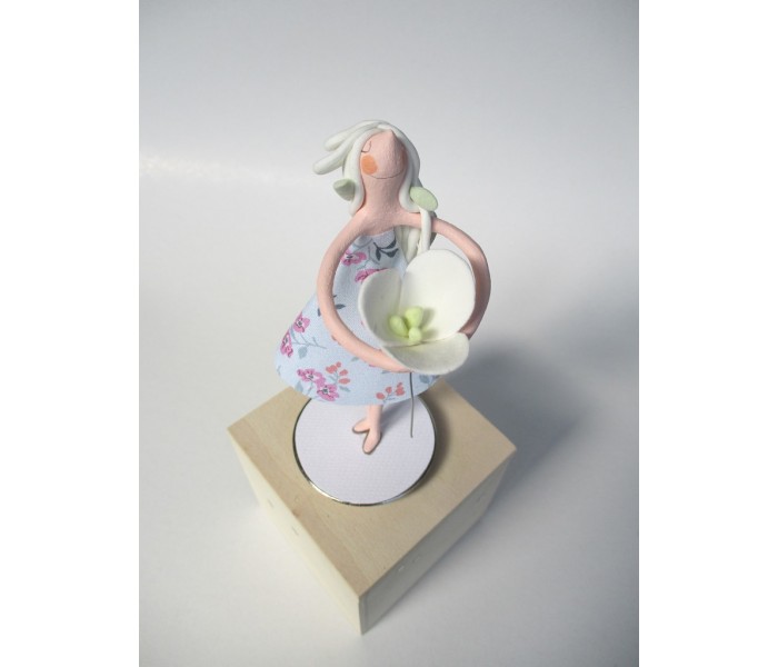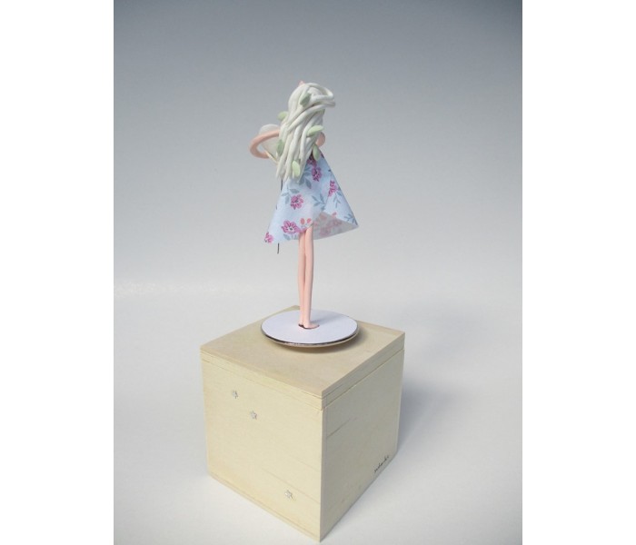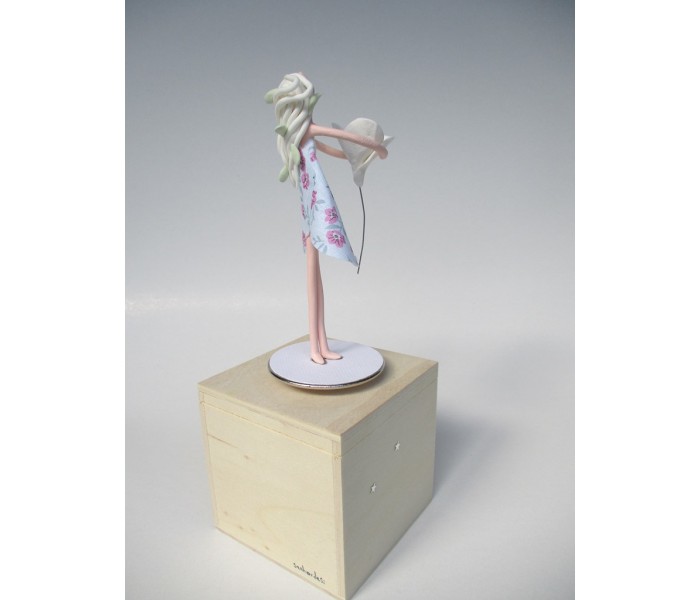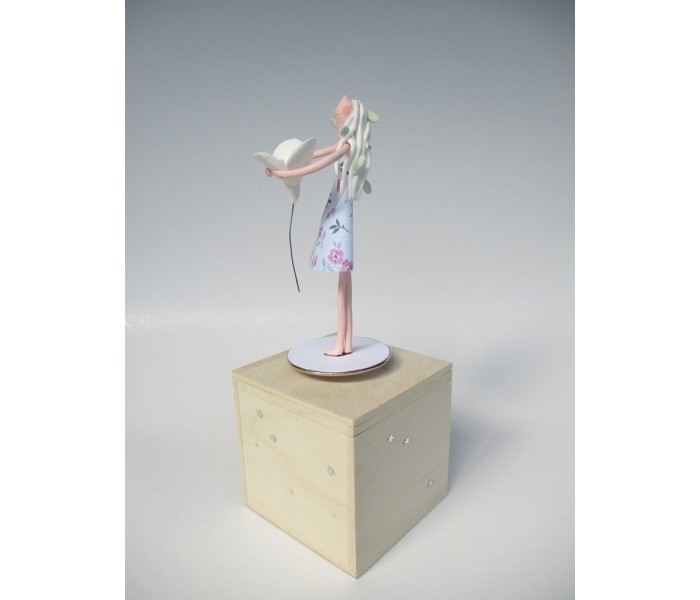 Escultura feita em massa ultra leve com 13cm de altura, caixa de madeira com 8x8x8cm com caixa de musica de corda musica memory