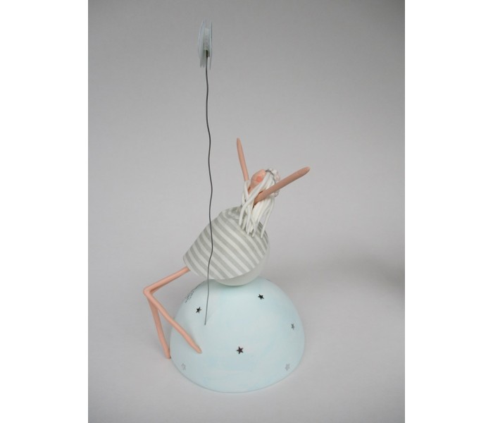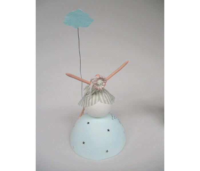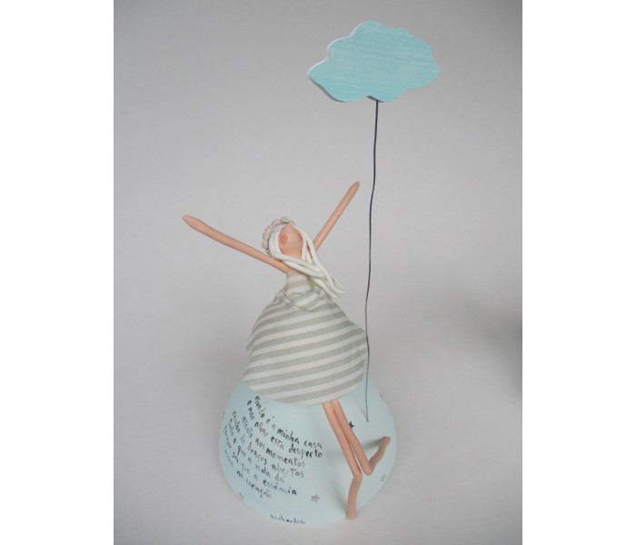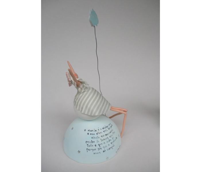 Escultura feita em massa ultra leve composta por meio mundo de 10cm de diametro, figura com 15cm e texto