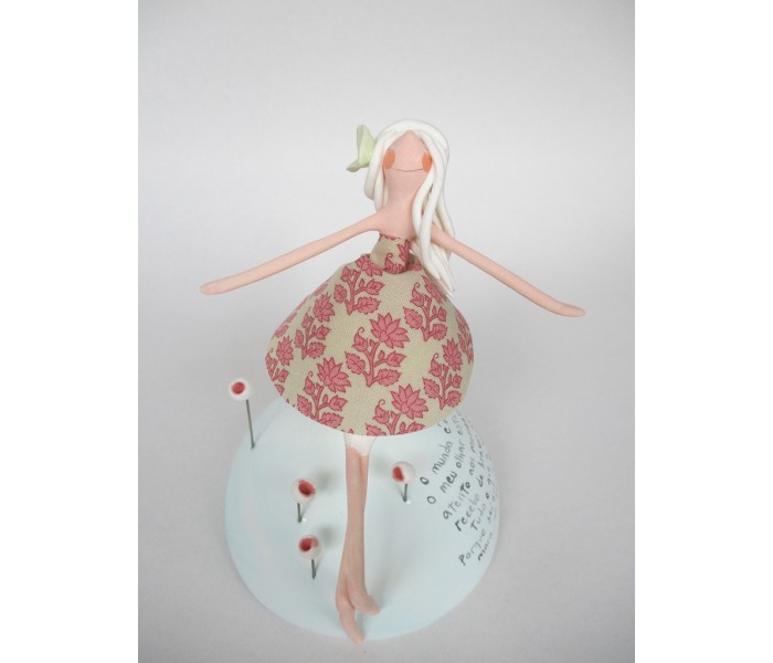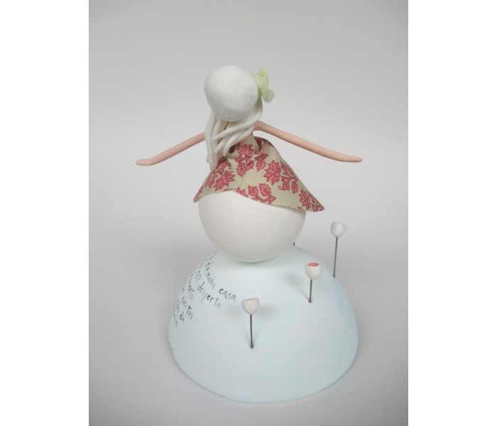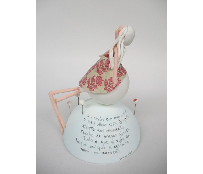 Escultura feita em massa ultra leve composta por meio mundo de 10cm de diametro, figura com 15cm e texto