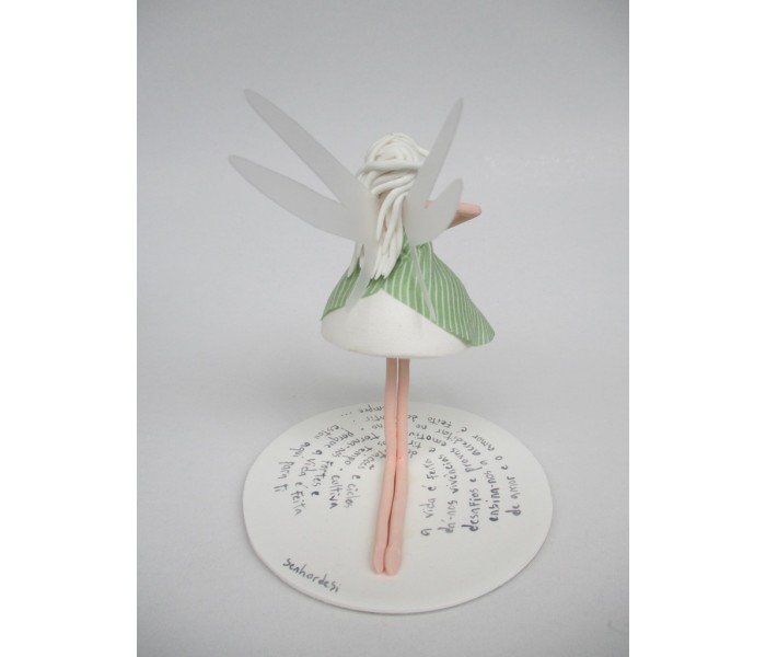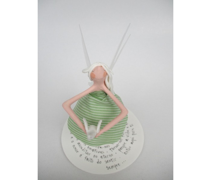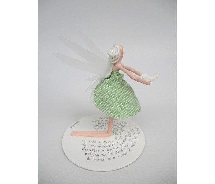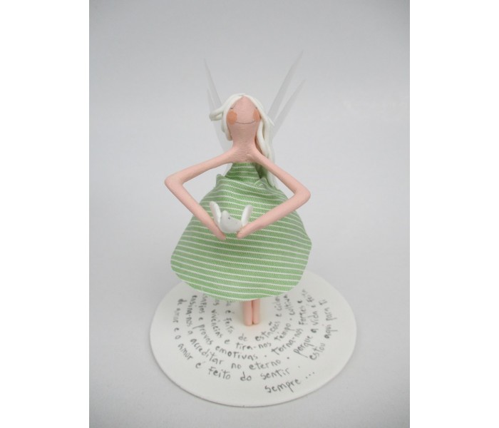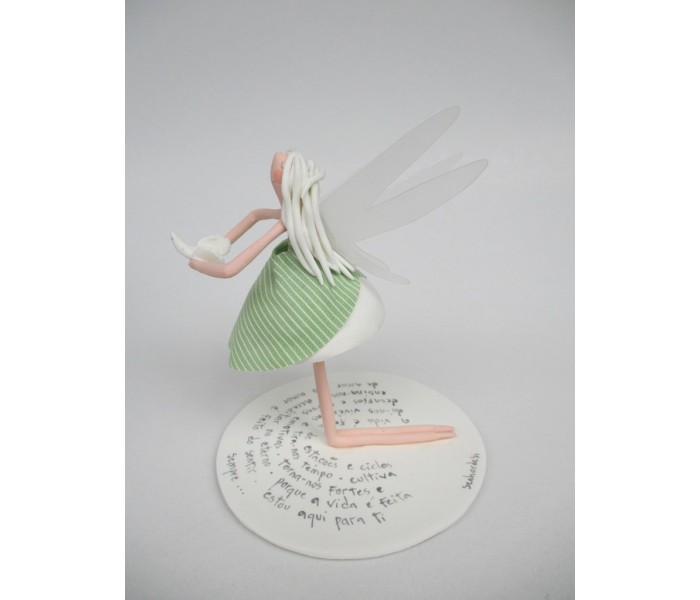 Escultura feita em massa ultra leve com base de massa com 9cm de diametro, figura de 14cm e texto