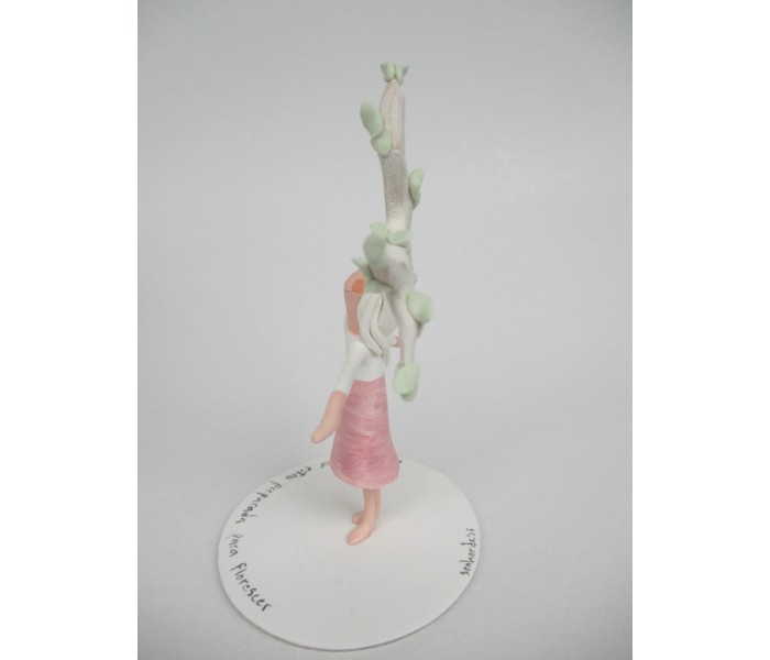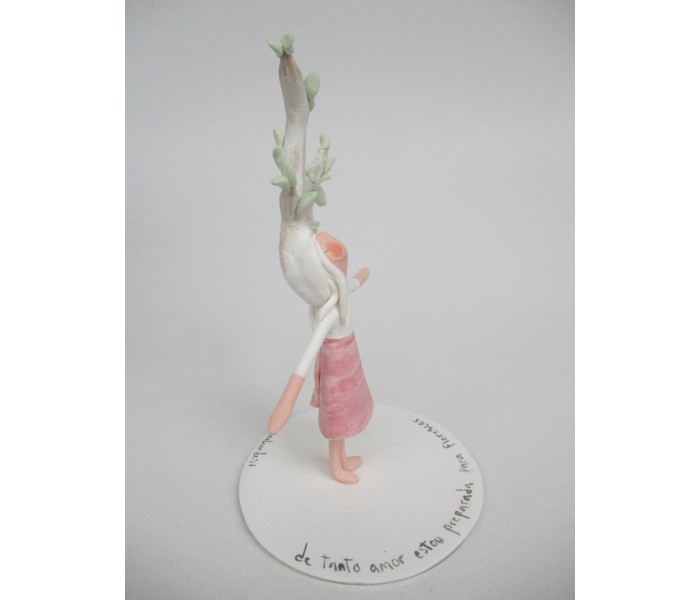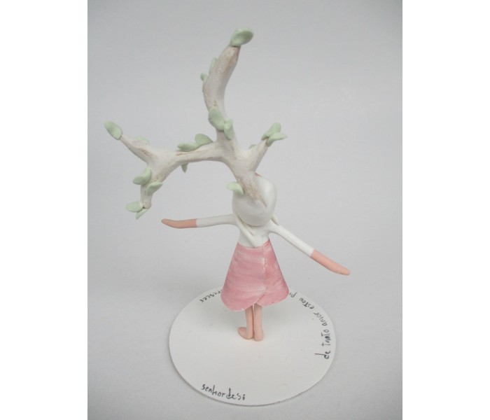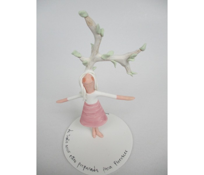 escultura feita em massa ultra leve, composta por base com 8cm de diâmetro, figura cvom 8cm e frase