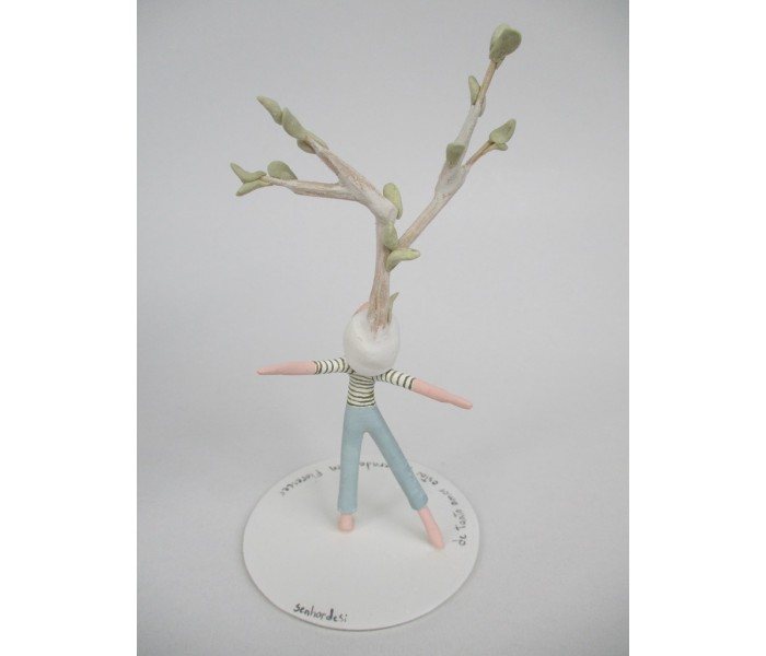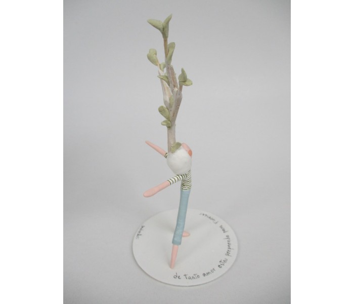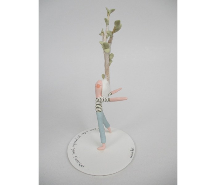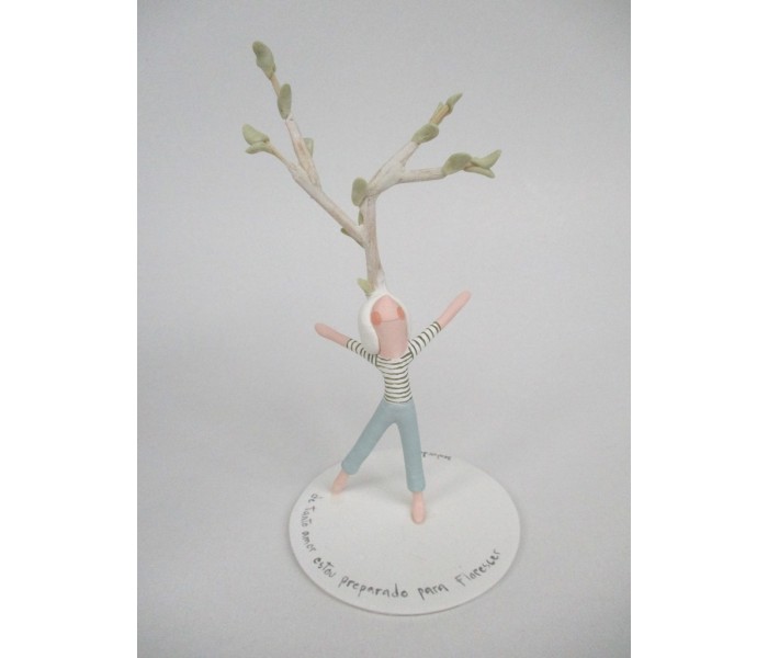 escultura feita em massa ultra leve, composta por base com 8cm de diâmetro, figura com 8cm e frase