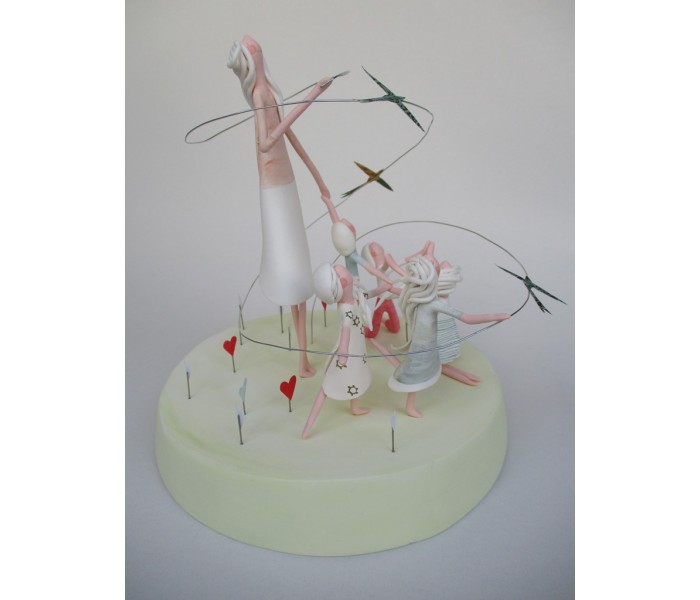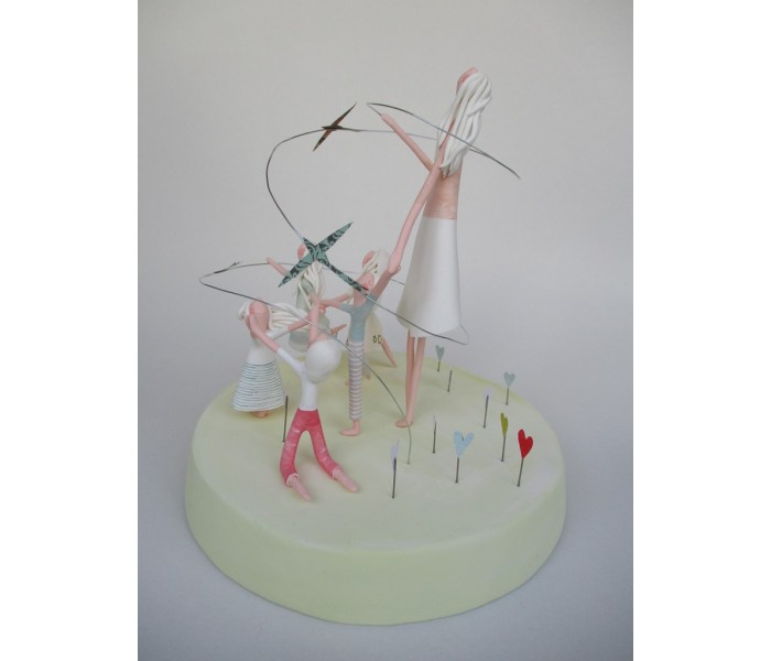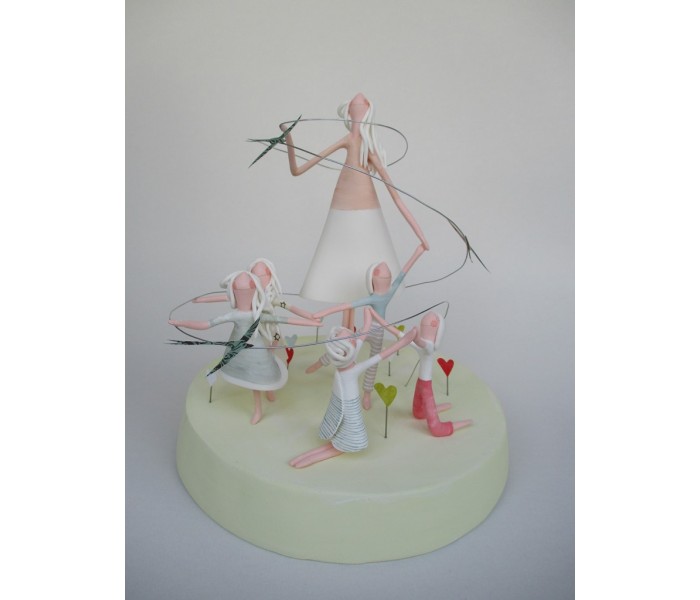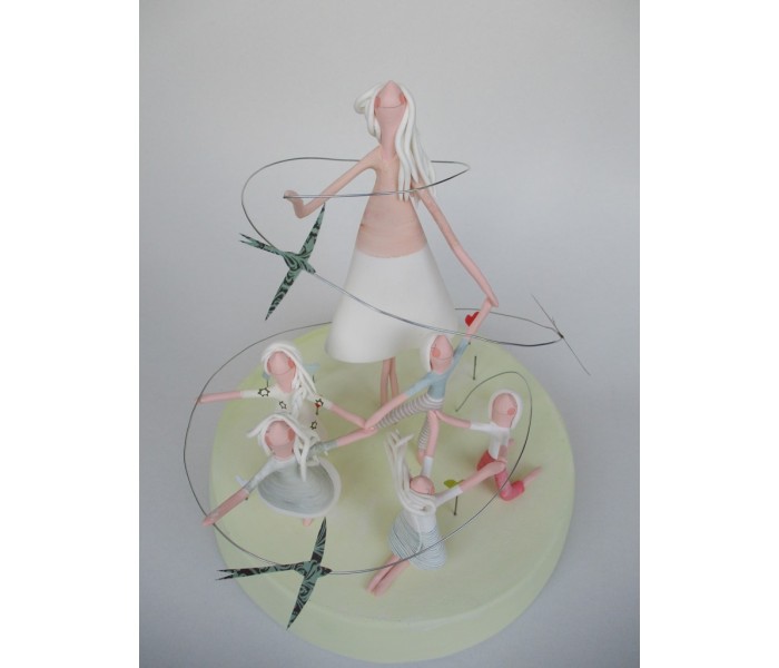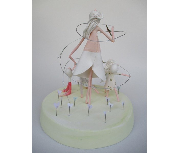 escultura feita em massa ultra leve composta por base com 18cm x 3cm de altura, figura maior de 18cm e 5 mais pequenas, com numero de flores ou corações igual ao numero de alunos e livro com todos os nomes dos meninos